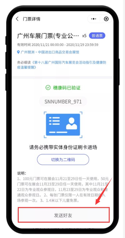 根据“穗康”小程序官方车展门票购买系统获悉,购买多余的门票可以送给您的好友,但仅支持微信转发。且门票一经售出,不予退款。