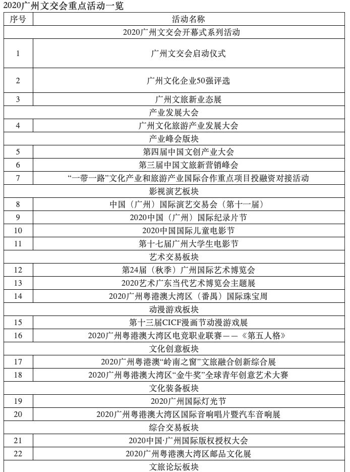 2020广州文交会重点活动安排