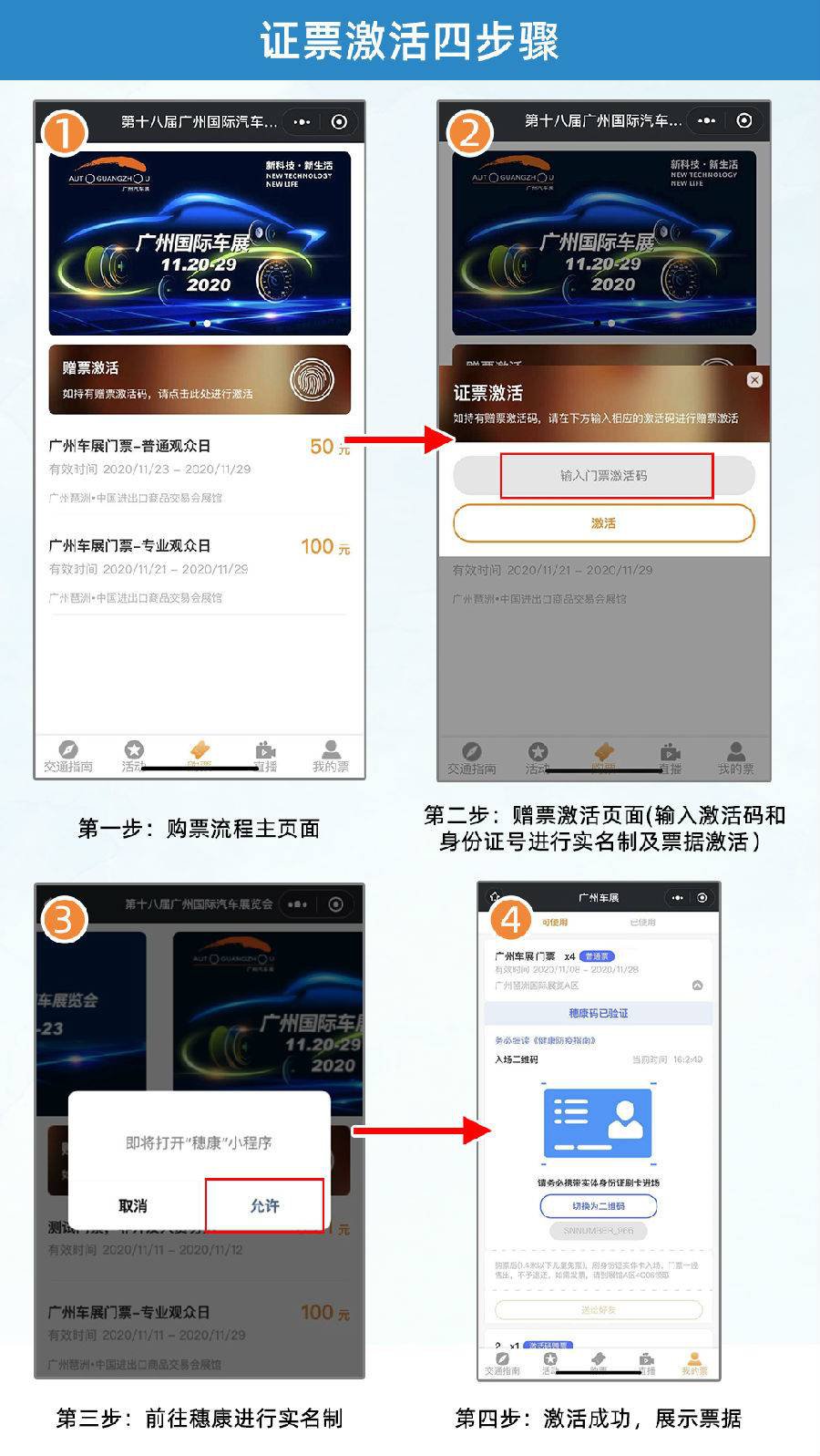 购票成功后,在广州国际汽车展(auto_guangzhou)公众号预约激活(每一个入园人都需要自己激活)。