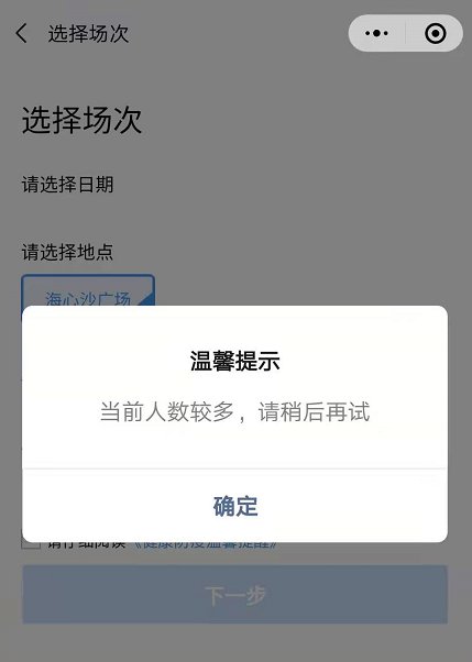 ①当前预约人数过于火爆,请稍后再预约。