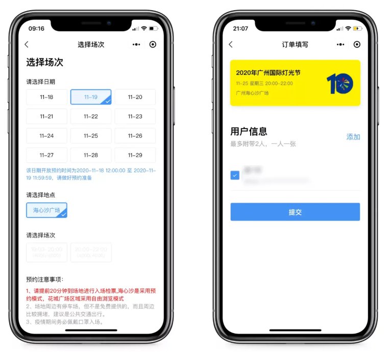 今年广州国际灯光节海心沙主会场预约成功后的小伙伴,视个人情况,添加同行人信息,提交即可预约成功,每人最多附带2人。