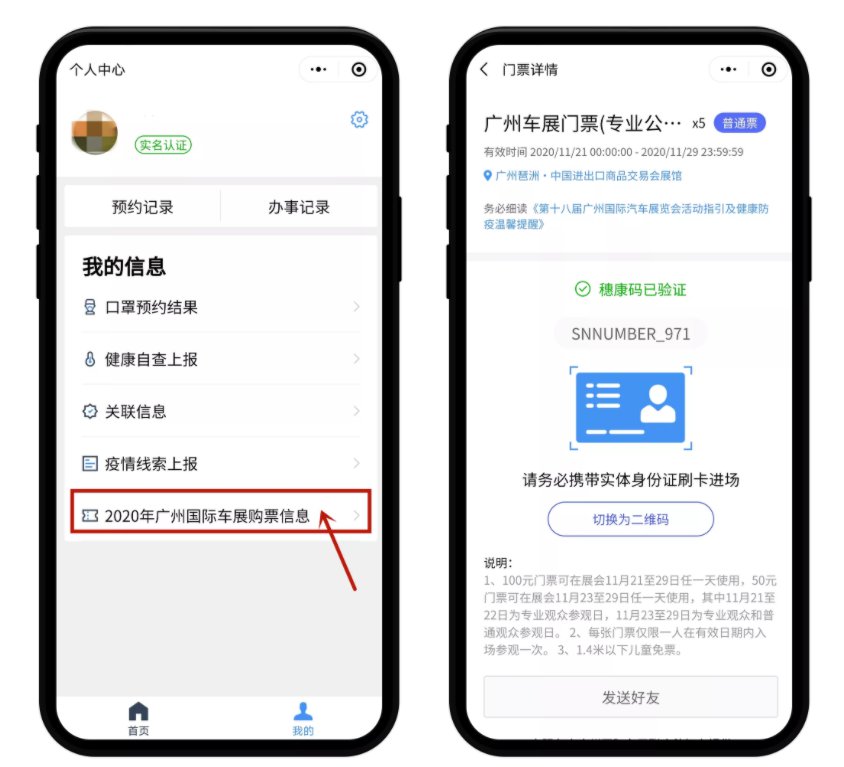 购买成功后,可在“穗康”小程序或“广州国际汽车展”公众号中查看购票信息。