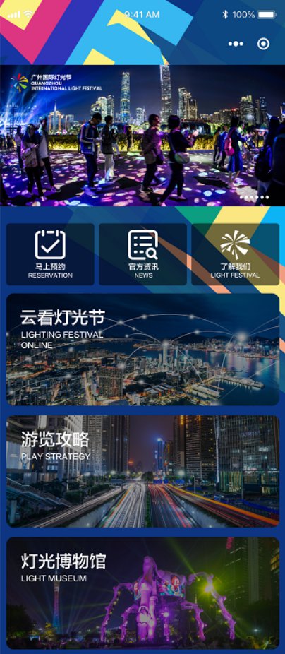 云看灯光节流程:关注“广州国际灯光节”微信服务号,点击菜单栏“云看灯光”,即可跳转进入小程序。