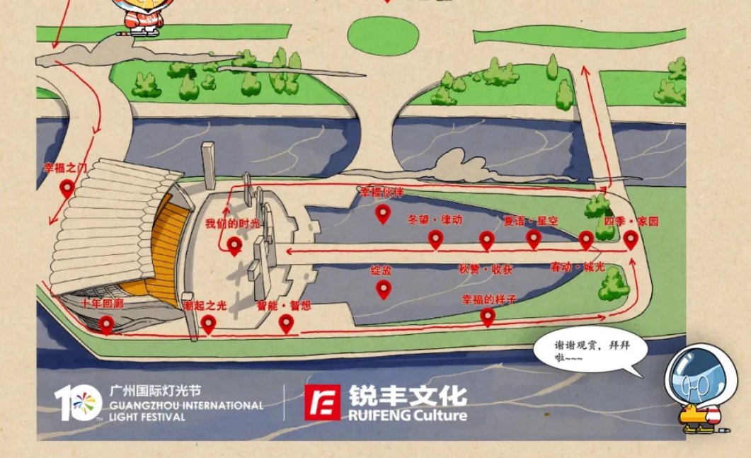 2020广州海心沙灯光节作品分布图和观赏路线一览