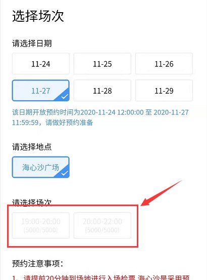 11月19日-11月29日每天预约名额共计10000个,分两场预约,每场名额5000个。