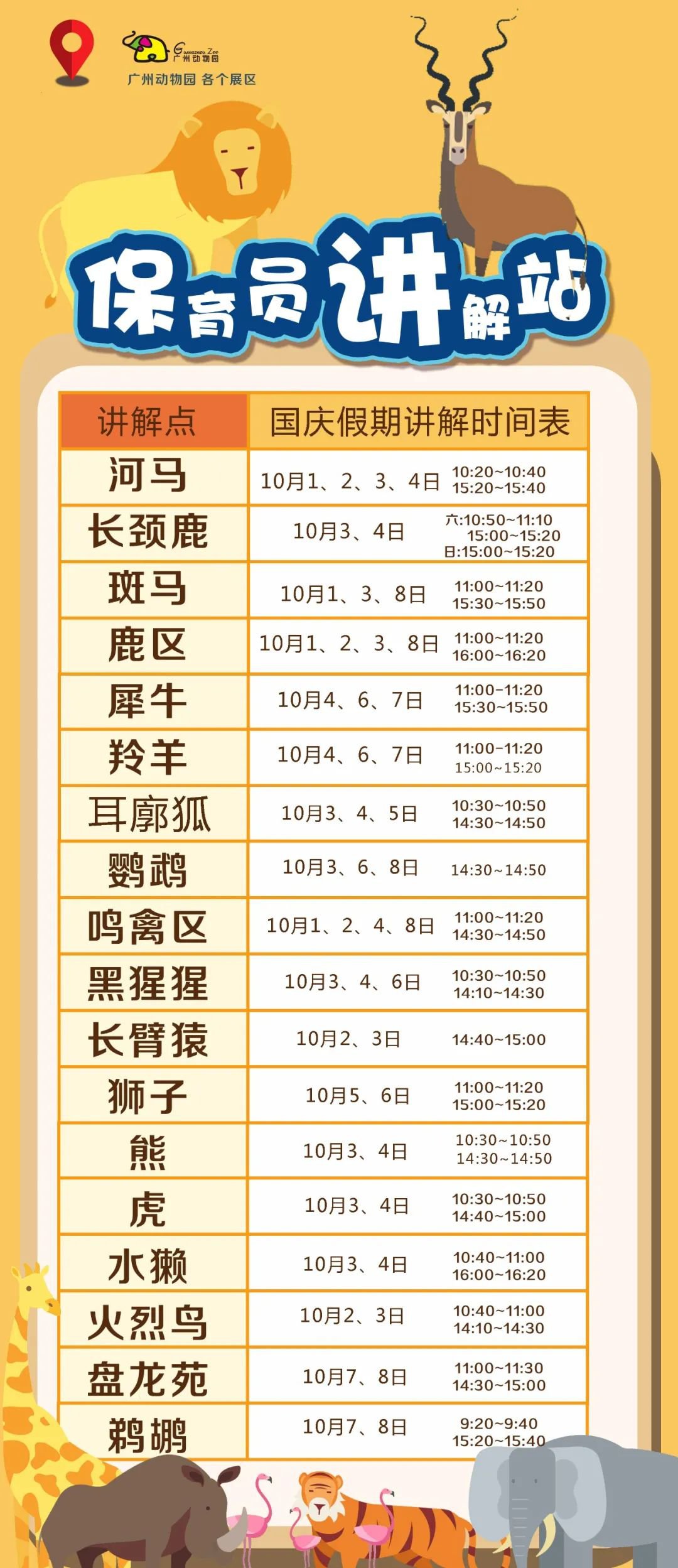 坡鹿、河马、斑马、水獭等18个保育员讲解站在国庆上岗,将为游客作动物知识科普讲解,讲述动物特征、生活习性、趣闻趣事等,并与游客进行互动问答,传递更多的动物知识。