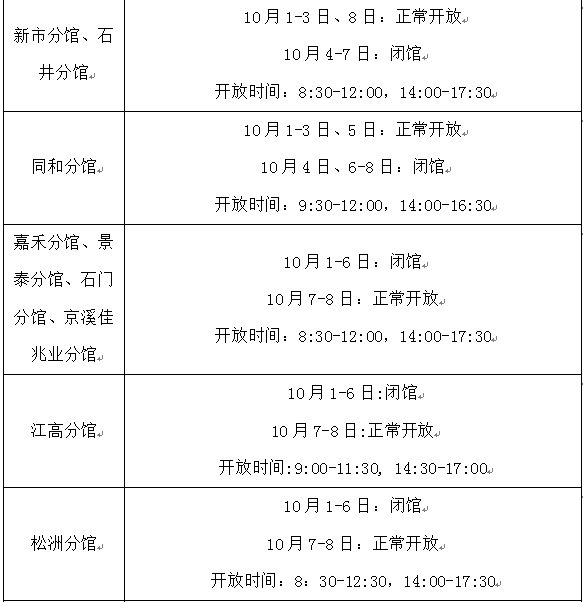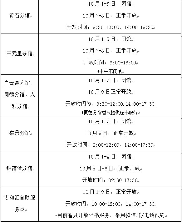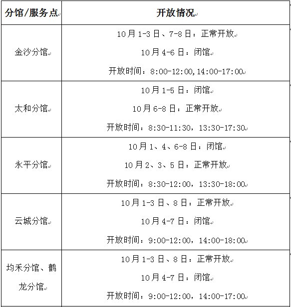部分分馆、服务点开放安排
