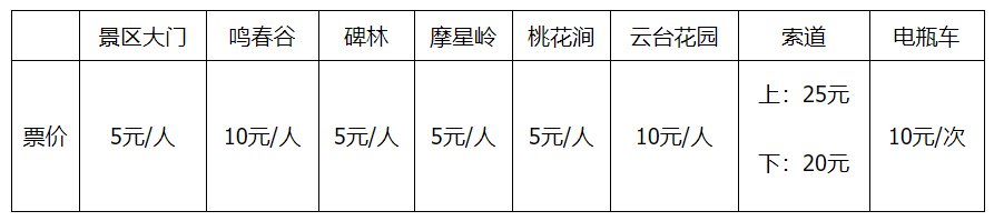 白云山票价: