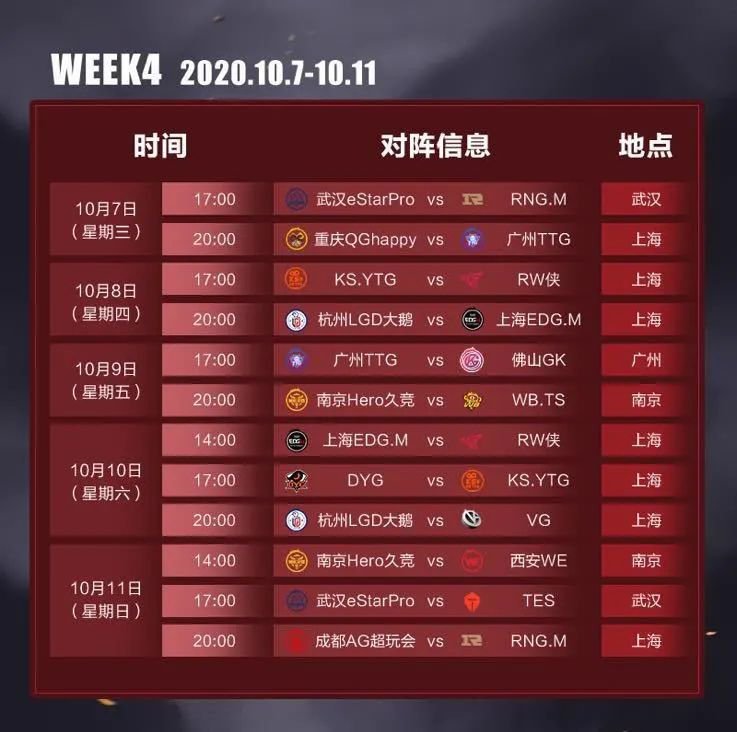 KPL秋季赛常规赛·第四周赛程表