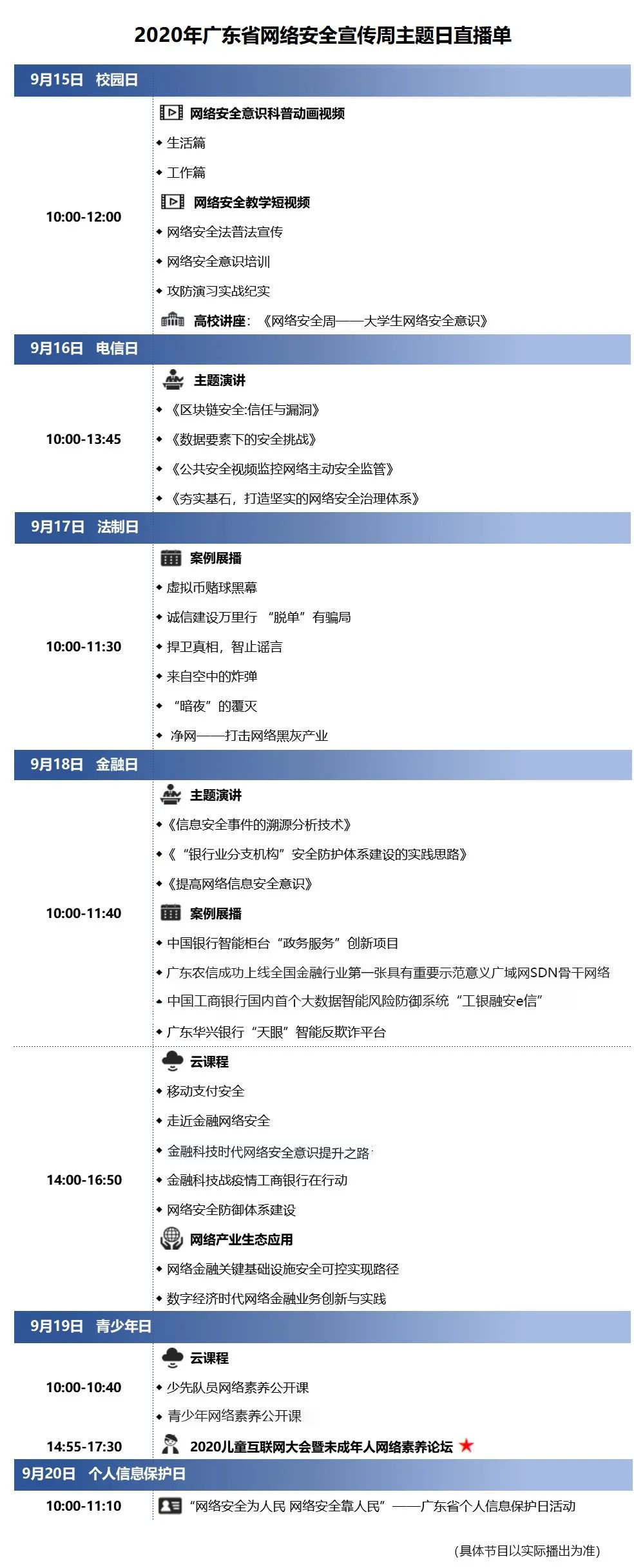 2020广东网络安全周主题日直播单一览(广东省网络安全宣传周直播)
