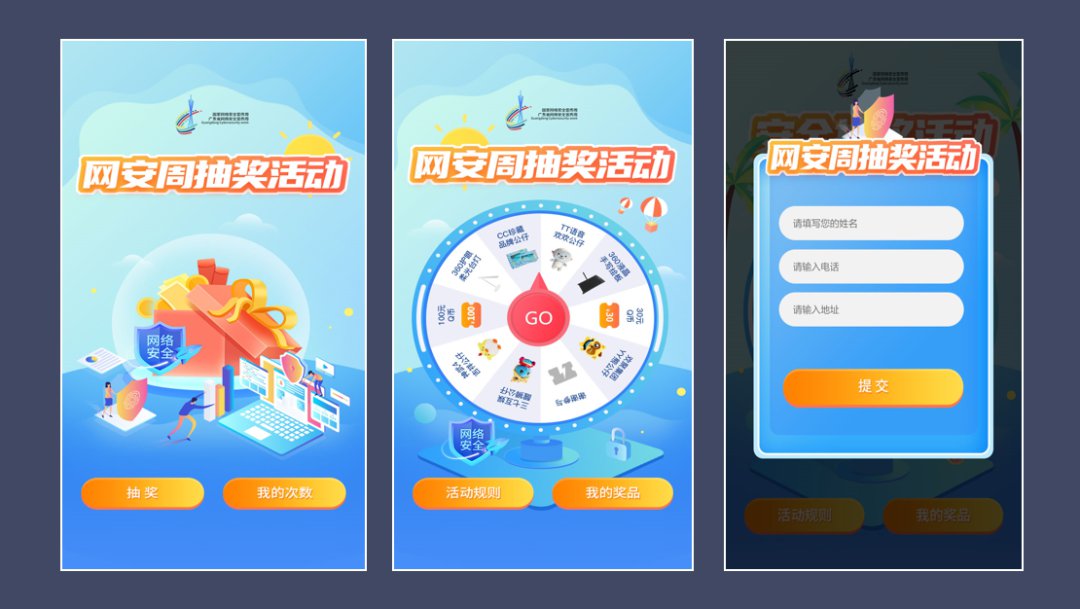 本次网络安全宣传周将举办多项重点活动、设置六大主题日,用户可登录线上平台,感受实时精彩。另外,主办方还专门在官网设置了页面抽奖活动,网友可通过浏览时长、浏览项目次数等获取不同的抽奖机会,奖品丰富,趣味十足!