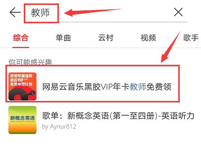 网易云音乐的申请方式非常简单,只需要在搜索栏输入“教师”就可以进入相关的页面,并且赠送的VIP为黑胶VIP年卡一张,赠送的数量为100万张,送完为止。