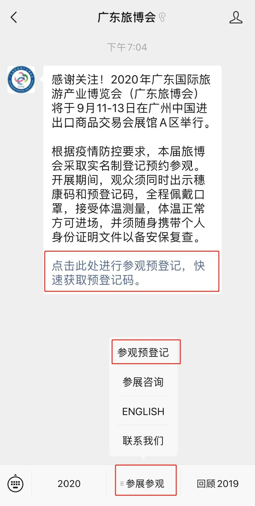方法二: 关注“广东旅博会”微信公众号(CITIE_Guangdong),点击【参展参观】-【参观预登记】