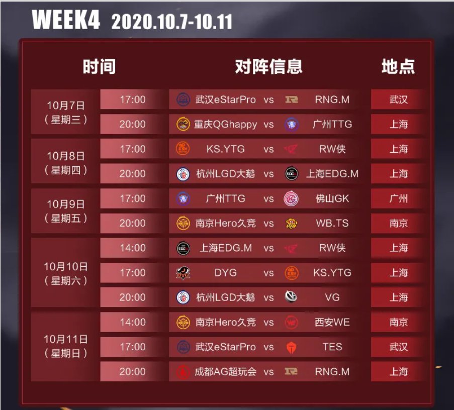 同时2020年KPL王者荣耀职业联赛秋季赛武汉eStarPro、广州TTG、南京Hero久竞三家俱乐部正式落地线下城市主场,联盟也将上海电竞中心作为线下主场。今年KPL王者荣耀职业联赛秋季赛将于上海、武汉、广州、南京四城开赛,让你可以在自己的城市,为你支持的主场战队加油助威!
