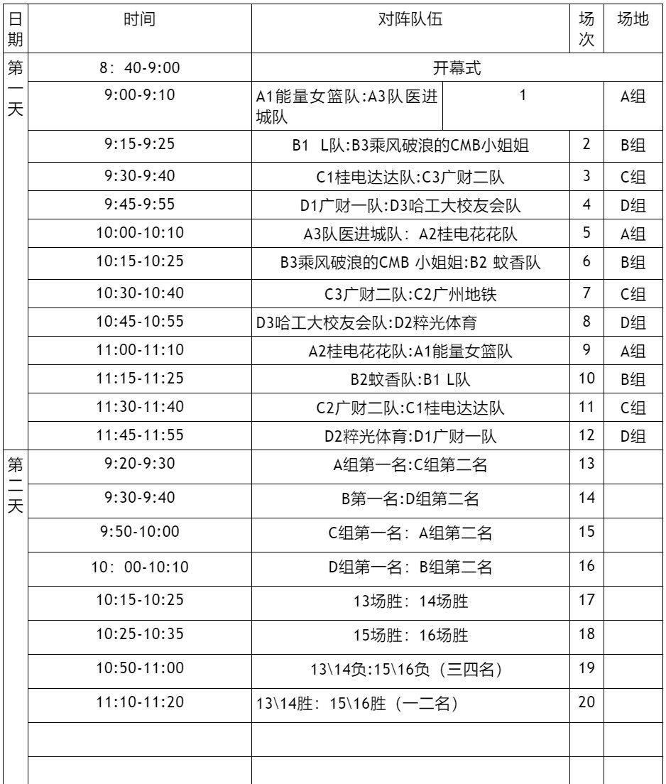 2020广州来穗女子三人篮球挑战赛赛程安排一览