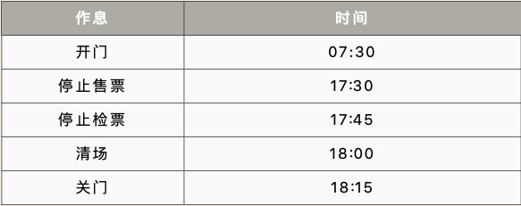 注:佛诞日、朔望、国家法定节假日提前半小时开门,推迟半小时关门。