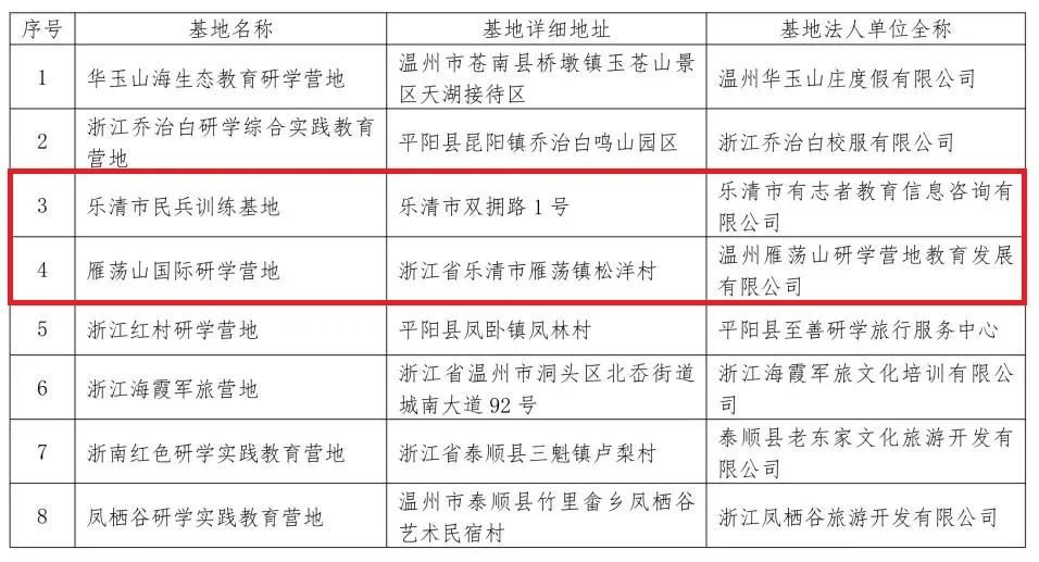 其中,温州奇特冰雪乐园、雁荡山(国际)研学营地筋竹涧研学基地、黄坦硐下垟大宅研学基地、铁定溜溜获评温州市中小学生研学实践教育基地获评温州市中小学生研学实践教育营地。