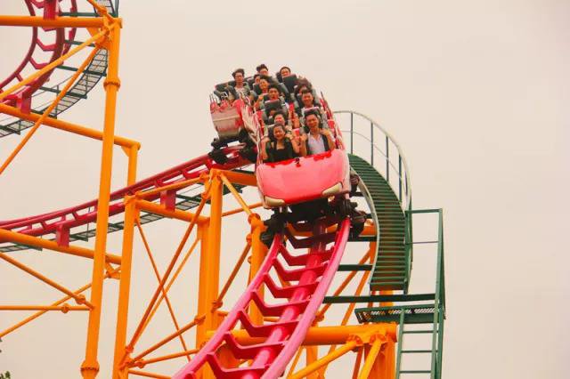 过山车是一种高度惊险而安全的大型游乐项目也是温州乐园的象征性游乐设备之一。它主要由一定坡度的闭合轨道、提升机构及一列(四节,每节可乘4人)载客滑车组成。