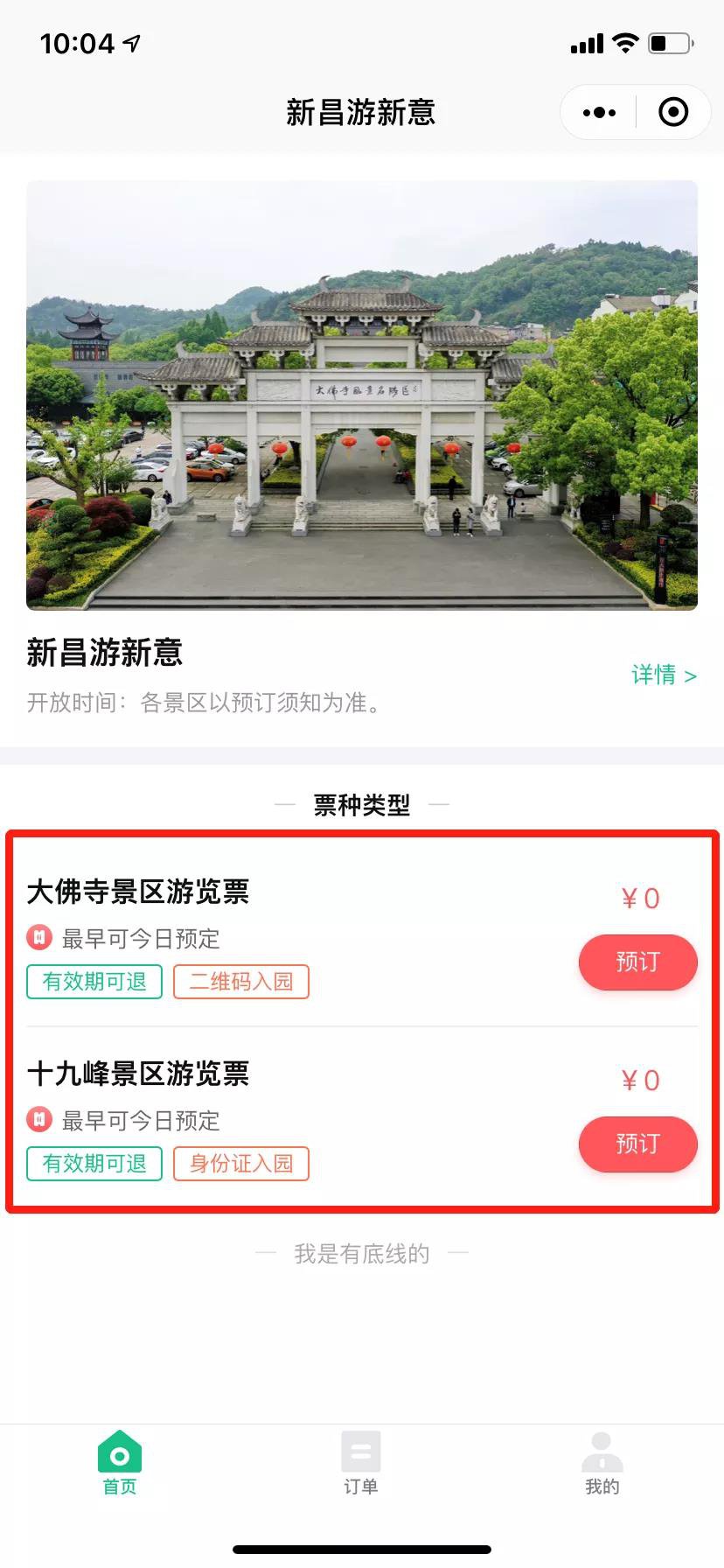 第一步:微信搜索并关注“新昌游新意”微信公众号,点击下方一级菜单“门票预订”进入预约界面,选择需预约的景区。