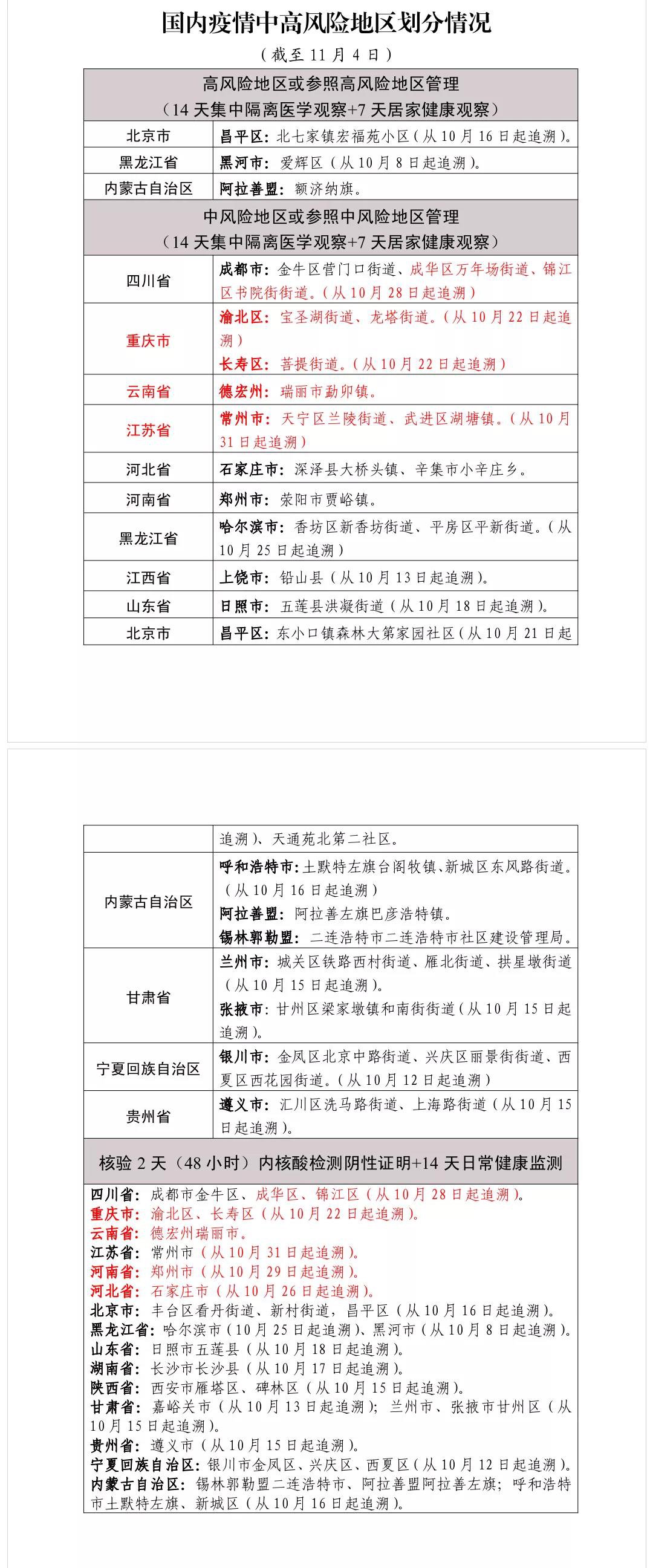 中高风险地区名单