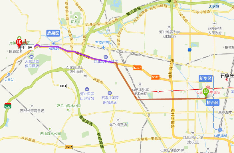 自驾路线:槐安路、和平路西行—307国道—观景大街—土门关驿道小镇