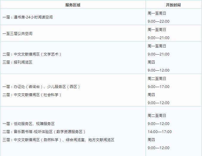 2、一层科普阅读空间、旅游专题文献馆,二层创客空间,三层古籍阅览室,四层各服务区暂不开放。